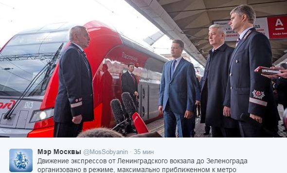 1 октября, Mossovetinfo.ru – «Движение экспрессов от Ленинградского вокзала до Зеленограда организовано в режиме, максимально приближенном к метро», - сообщается в официальном микроблоке Мэра Москвы ‏@MosSobyanin в twitter.